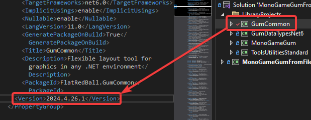 3. Double-click GumCommon and find the version. Copy this, then do a global find/replace to update all versions to the latest version.\