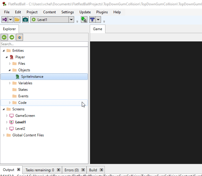 The following example shows how to create shapes in Gum and use them as the entity's collision. This example will use a default Player using the top-down controls, however it can be used on any type of entity.