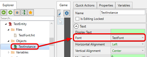 <figure><img src="https://951240982-files.gitbook.io/~/files/v0/b/gitbook-x-prod.appspot.com/o/spaces%2F-M_fye9Ufg3vzJxwX5Hk%2Fuploads%2F6PXUmVeeBKJNzlTmfGXI%2Fimage.png?alt=media&#x26;token=b273e1e1-d8be-4676-88b5-a1068b01b754" alt=""><figcaption><p>TextInstance with a Font assigned</p></figcaption></figure>