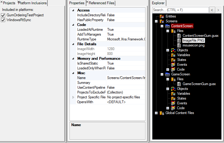By default, files added to Glue will automatically be added to all associated Visual Studio projects. Some files, however, are only needed on some platforms. Files can be excluded from certain projects through the Platform Inclusions tab. Note that this tab will only appear when a file is selected in Glue project which has more than one code solution (added through [Project Sync](https://github.com/flatredball/FlatRedBallDocs/blob/main/documentation/tools/glue-reference/menu/glue-reference-menu-file-new-synced-project.md)).