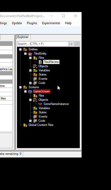 4. If your entity has a LayeredTileMap object (which we called **EntireFile** earlier) remove it - it needs to be created in code instead.