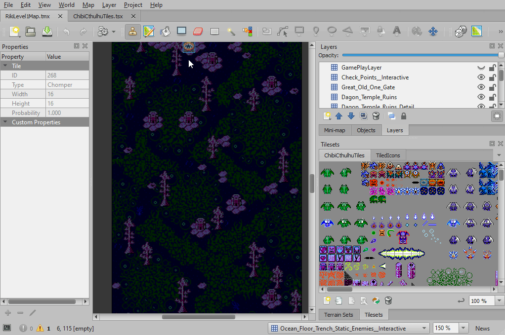 The easiest way to add an instance of an entity to a game is by dropping a Tile into your level map. First, we will mark which tile to use for the entity type.