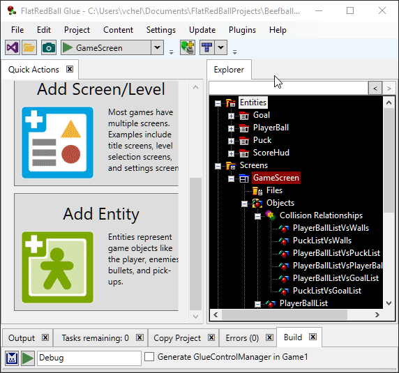 1. In FlatRedBall, expand the **PlayerBall** entity