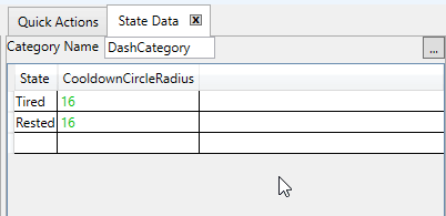 2. States can interpolate from one to the other. In this case, we'll have the "Tired" state set the CooldownCircle to have a small radius, and the "Rested" will have a large circle. The end result is the CooldownCircle "grows" as the player's dash is recovering.