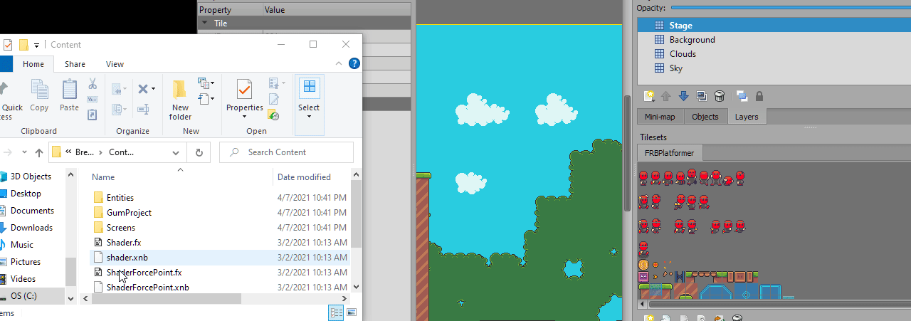 2. [FRBPlatformerTileset.tsx](https://github.com/vchelaru/FlatRedBall/raw/NetStandard/Samples/Platformer/BreakingBlocks/FRBPlatformerTileset.tsx) - the tileset for the visuals in our game