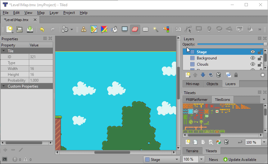 1. Double-click the new Level1Map.tmx - either in the file explorer or in Glue