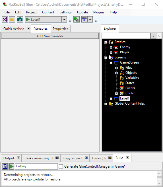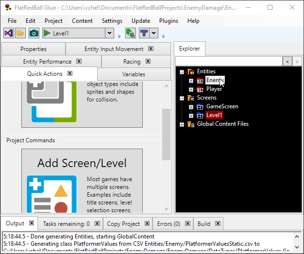 This tutorial covers how to add an Enemy to your project. To speed up the process we'll be importing an existing entity rather than building a new one ourselves. Once imported, we will modify the entity so it has the functionality we'll need for this tutorial - specifically adding the ability for the enemy to take damage.