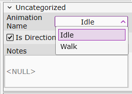 If the Is Direction Facing Appended checkbox is checked, then FRB automatically assumes that animations will have Up, Down, Left, and Right versions, where the direction is appended. Therefore, FRB strips off these directions and only displays the animation name (removing duplicates).