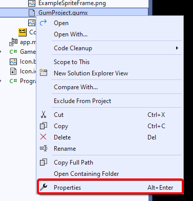 1. Right-click on any Gum file in your project, such as GumProject.gumx