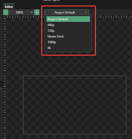 The canvas can be adjusted by selecting from the dropdown in the Editor tab.