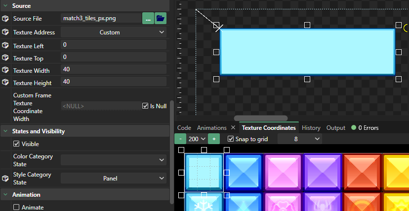 The **Custom** value allows specifying a custom set of coordinates for the Nine Slice. **Custom** is most often used when an image is part of a sprite sheet. The following example uses this image: