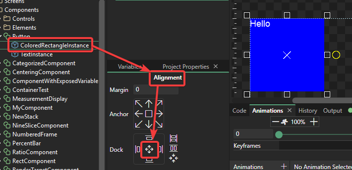 Now the ColoredRectangleInstance automatically matches the Button's actual with and height: